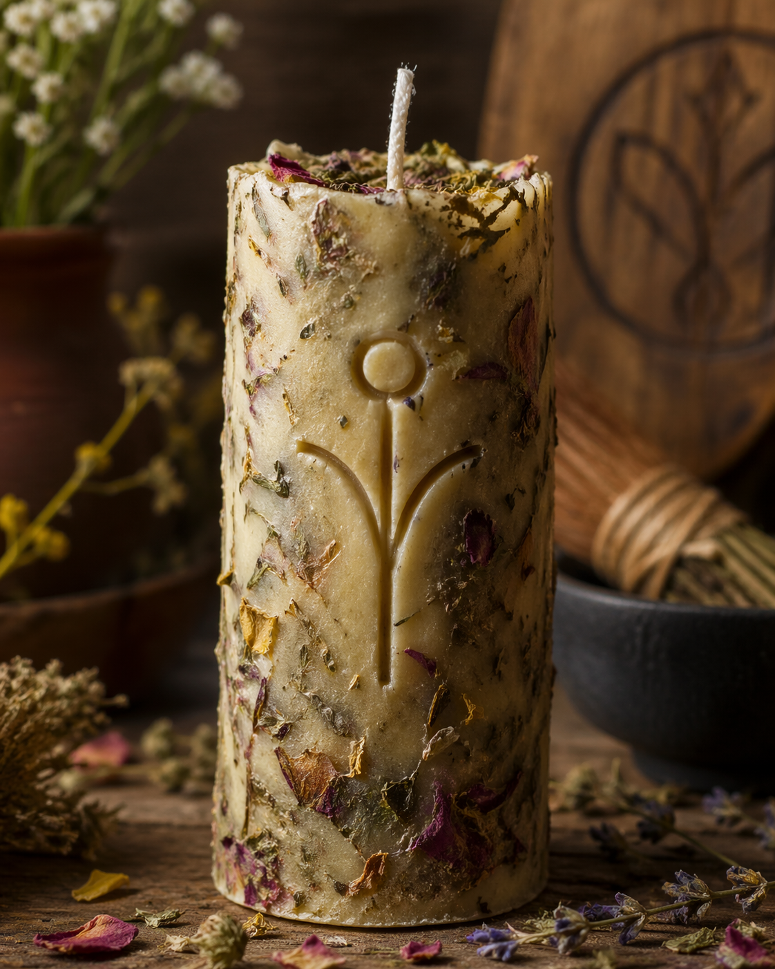 You’ll begin by setting your intention as you hand-roll and carve your own candle, dressing it with herbs and oils that welcome the energy of the coming season — abundance, warmth, and growth.